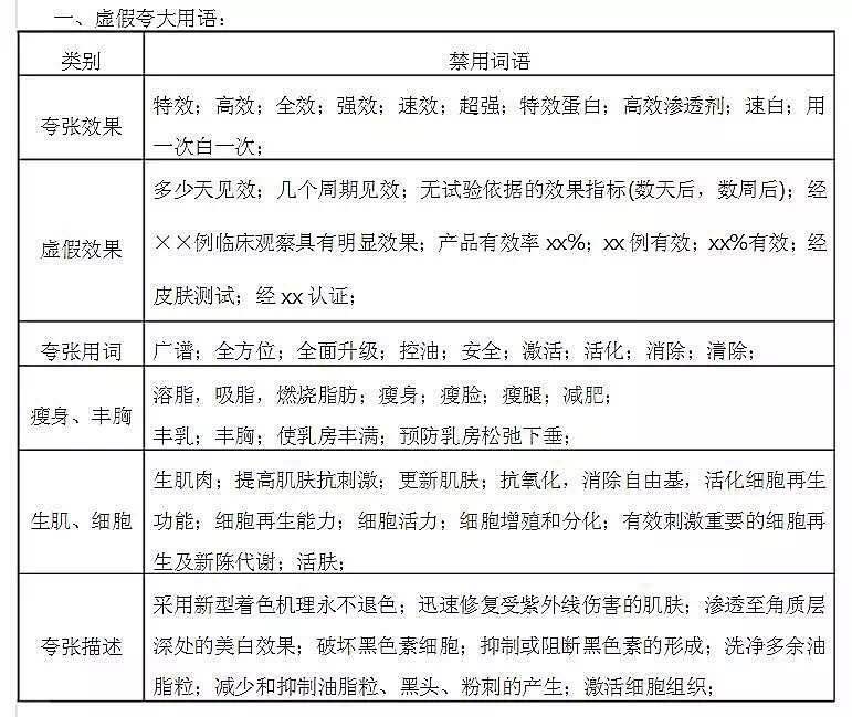 第一部分:化妝品包裝禁止標(biāo)注的用語